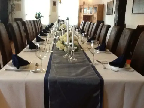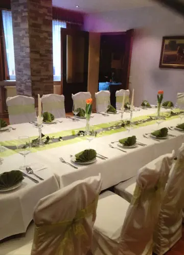 bietet Ihnen Platz für bis zu 40 Personen. Auch hier dekorieren wir Ihnen den Tisch ganz nach Ihren Vorstellungen.