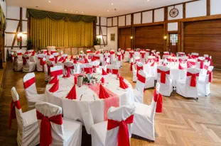 Unser Saal bietet Ihnen Platz für bis zu300 Personen. Er ist damit ideal für großeVeranstaltungen wie zum Beispiel Hochzeiten.Die Theke, die sich auf dem Saal befindet, steht Ihnen für die Bewirtung Ihrer Gäste zur Verfügung.Sollten Sie für Ihre Feier eine Band beauftragthaben, kann diese natürlich die große Bühneauf dem Saal nutzen.